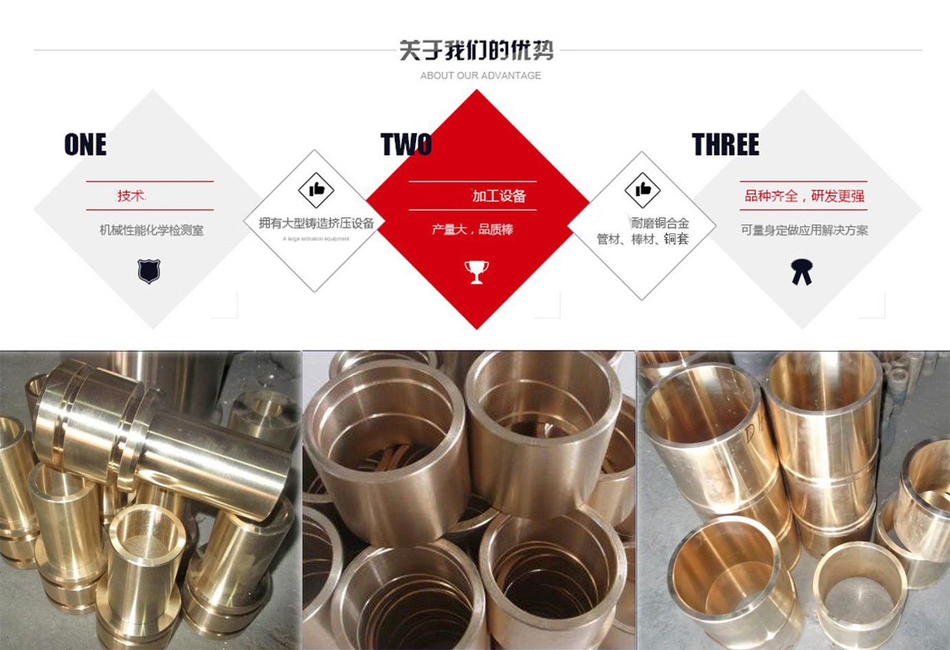 河間市銅套制品有限公司的生產設備精良,擁有40臺國內外先進設備;工藝水平先進,擁有砂型鑄造,金屬鑄造,離心鑄造等技術;是專業研究,開發自制的金屬制品企業。公司坐落于滄州市河間市束城鎮,是國務院確定的經濟開發區,地處北方重要陸海交通樞紐,交通十分便捷,且位鄰米各莊物流園,物流十分快捷,全國各地達到48小時內到貨?! ≈饕洜I:公司主要生產銅套,自潤滑銅套,儀器配件等,如銅軸套、銅滑板、銅瓦、銅蝸輪、銅滑塊、石墨軸承、石墨滑板、汽車配件,儀表,絲杠,法蘭,沖壓件,儀器零件,國標,非標,各種規格各種材質的金屬制品?! ‘a品應用領域:工程機械 水利機械 礦山設備 液壓設備 鍛造設備 化工設備 紡織設備 冶金行業 機械 重工輕工等諸多領域?! ≈饕献鲉挝唬菏锥间撹F集團 ,河北鋼鐵集團 ,唐山鋼鐵集團 ,承德鋼鐵集團, 北京普析, 天津塞特。  常用材質介紹:錫青銅:以錫為主要合金元素的銅基合金稱錫青銅,錫青銅在造船、化工、機械、儀表等工業中廣泛應用,主要用以制造軸承、軸套等耐磨零件和彈簧等彈性組件以及抗蝕、抗磁零件等,有高的強度、彈性、耐磨性和抗磁性,在熱態和冷態下壓力加工性良好,對電火花有較高的抗燃性,可焊接和纖焊,可加工性好,主要牌號有ZCuSn6Zn6Pb3,ZCuSn10Pb5,ZCuSn...